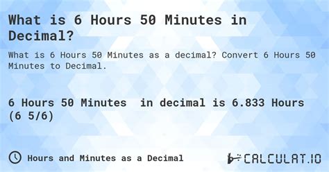 6 hours and 50 minutes in decimal form. There are some references to 6 hours and 50 minutes in decimal form in this article. If you are looking for 6 hours and 50 minutes in decimal form you've came to the right place. We have posts about 6 hours and 50 minutes in decimal form. You can check it out below.