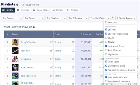 different playlist categories